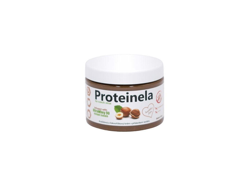 Náš produkt Proteinela je výborný zdroj kvalitních živin, hlavně bílkovin a nenasycených tuků! Díky vysokému obsahu bílkovin pomáhá k udržení a růstu svalové hmoty. Je vhodný jako přídavek do proteinového nápoje, palačinek nebo jen tak na lžičku. V produktu naleznete kromě arašíd a lískových ořechů také syrovátkový izolát (CFM, UltraWhey 90 instant), belgickou čokoládu a kokosový olej. Vysoce kvalitní složení produkt předurčuje k tomu, abyste ho vyměnili za nezdravé varianty plné bílého cukru a palmového oleje.